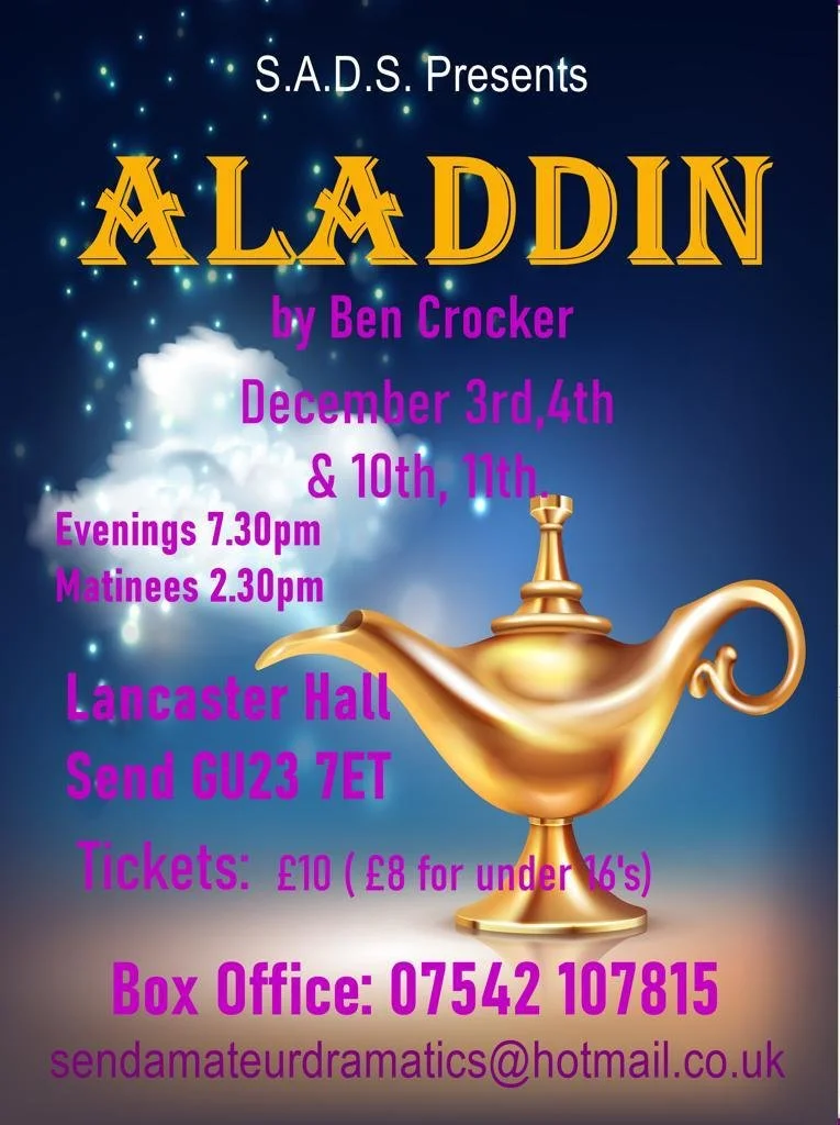 Added to the brilliant and very funny script, we have a very strong cast and chorus who, as well as bringing you lots of fun and laughter, will be singing and dancing to songs known by everyone so you can join. With of course a nod to the Aladdin songs from the famous films and stage show.